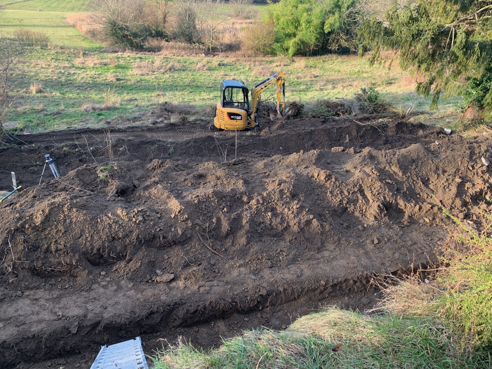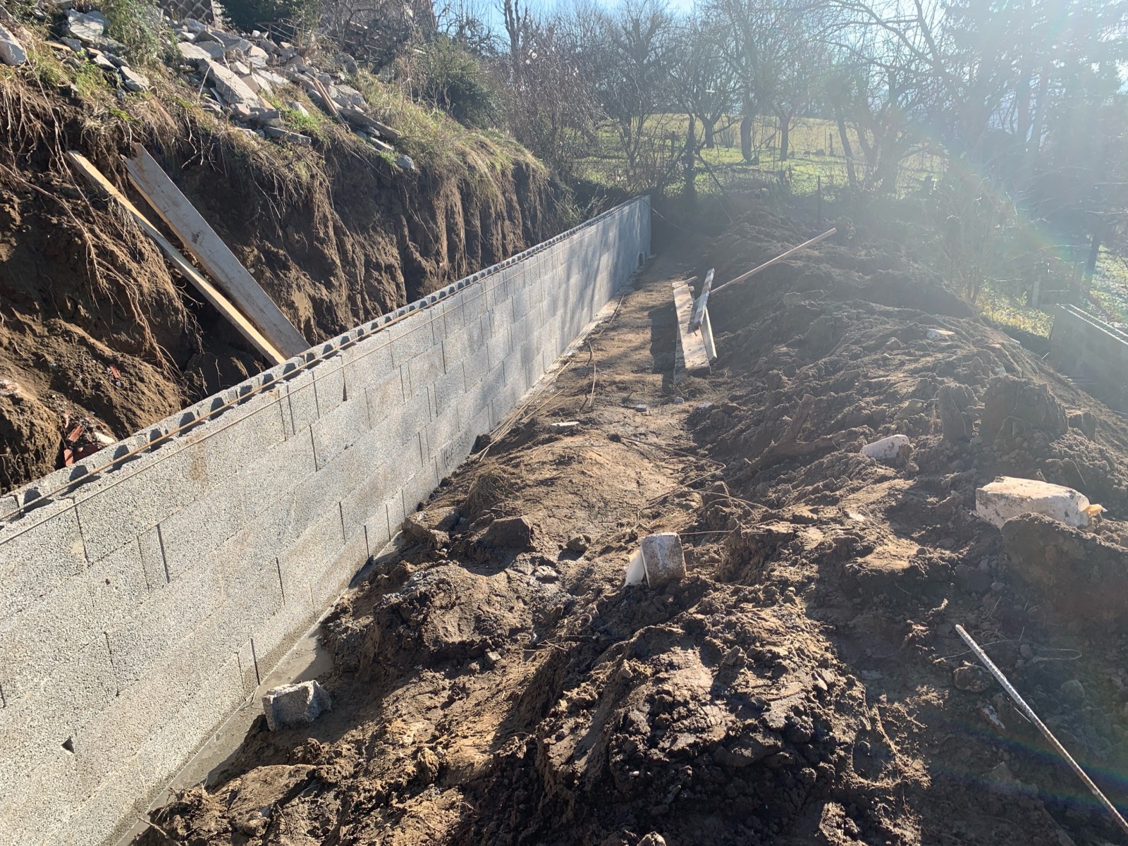 Les travaux ont été réalisés avec un tractopelle standard (800/1000 L), carburant inclus, ainsi qu’une main d’œuvre qualifiée répartie sur l’ensemble des phases de terrassement, bétonnage et maçonnerie. Tous les matériaux utilisés sont conformes aux normes DTU en vigueur.